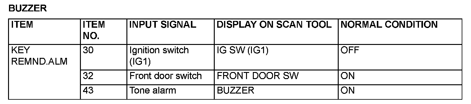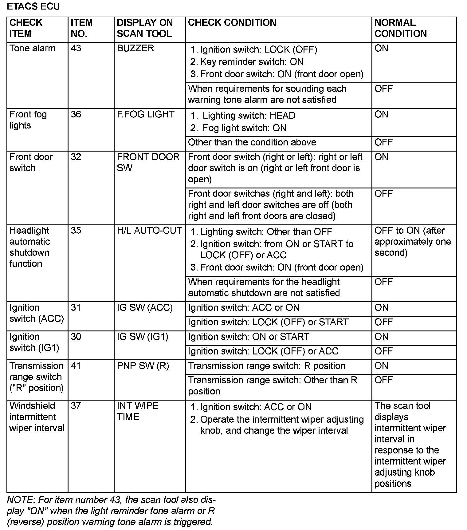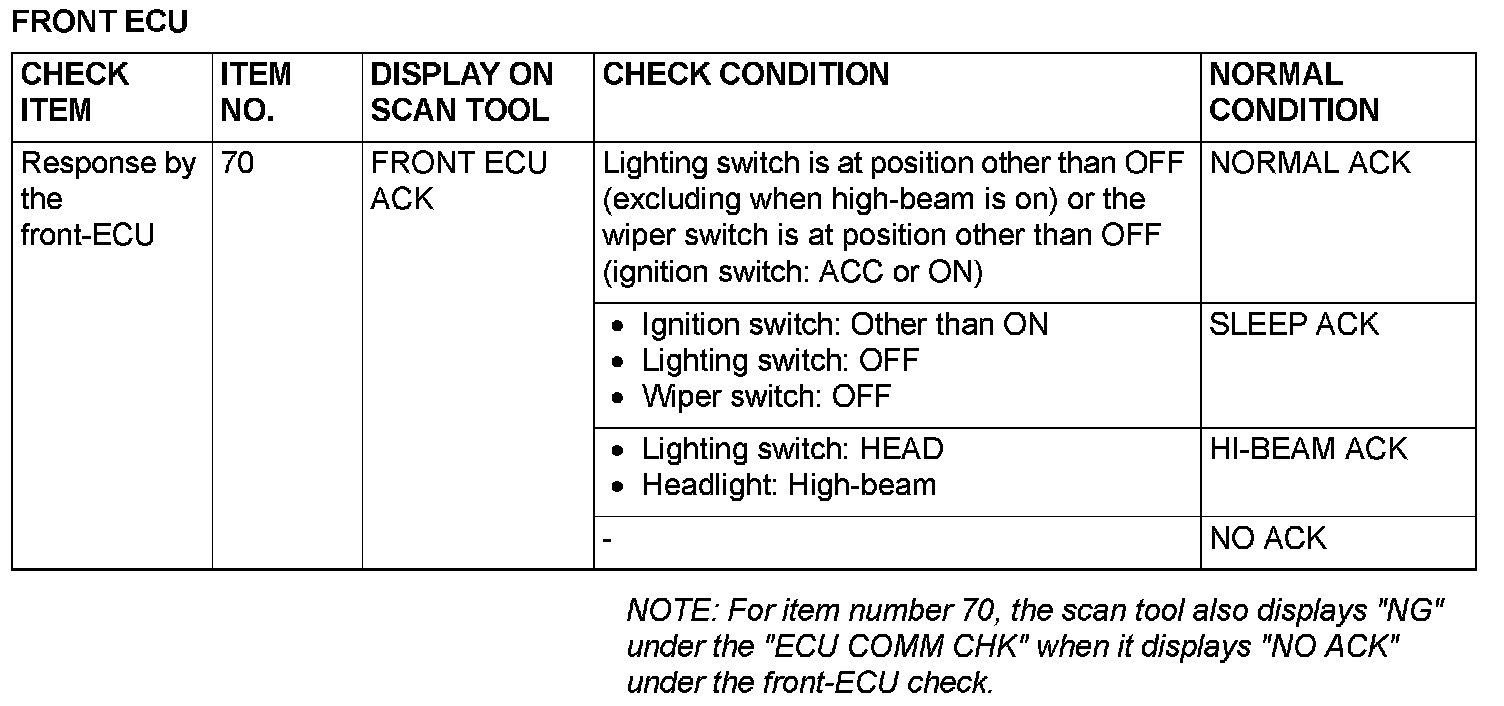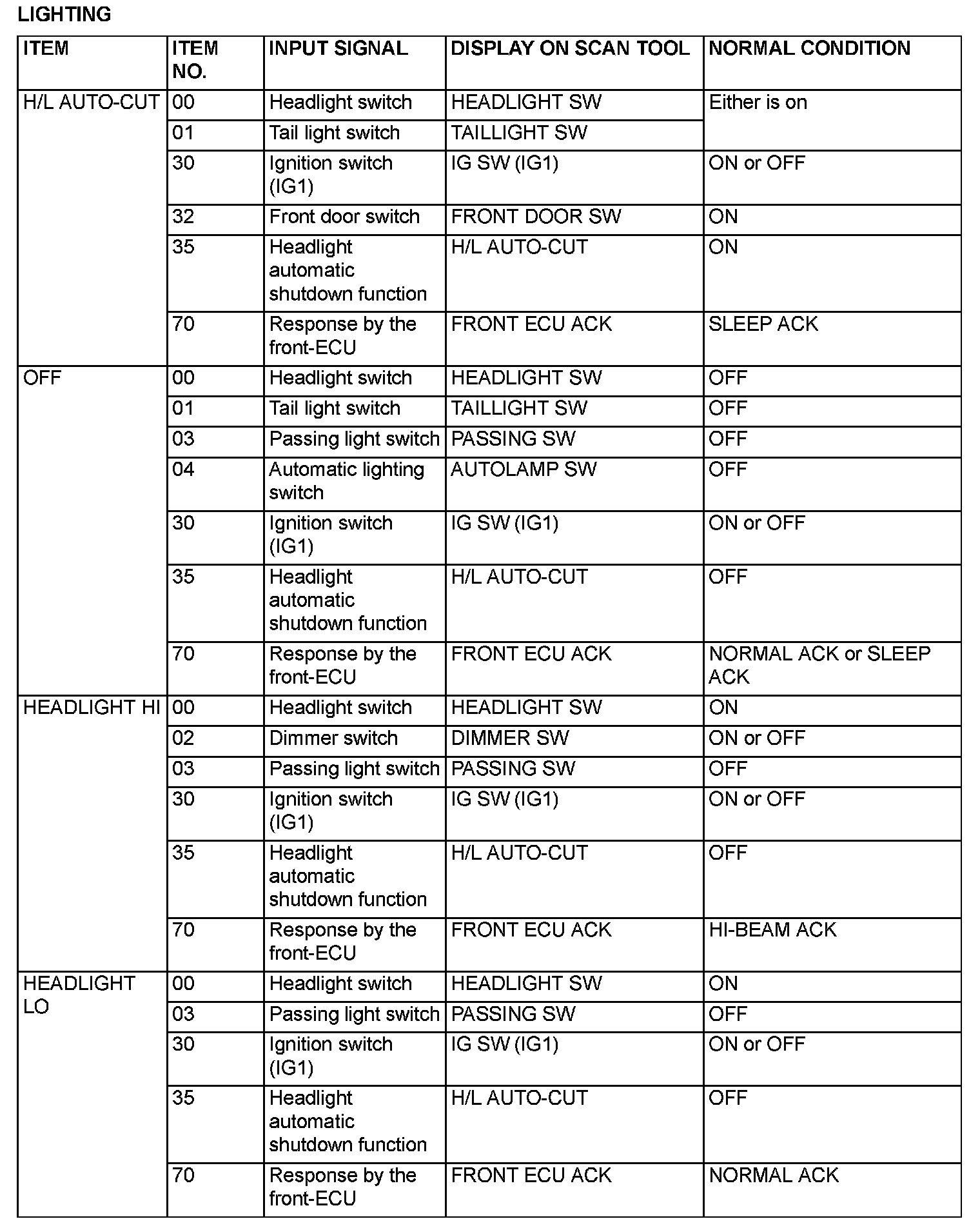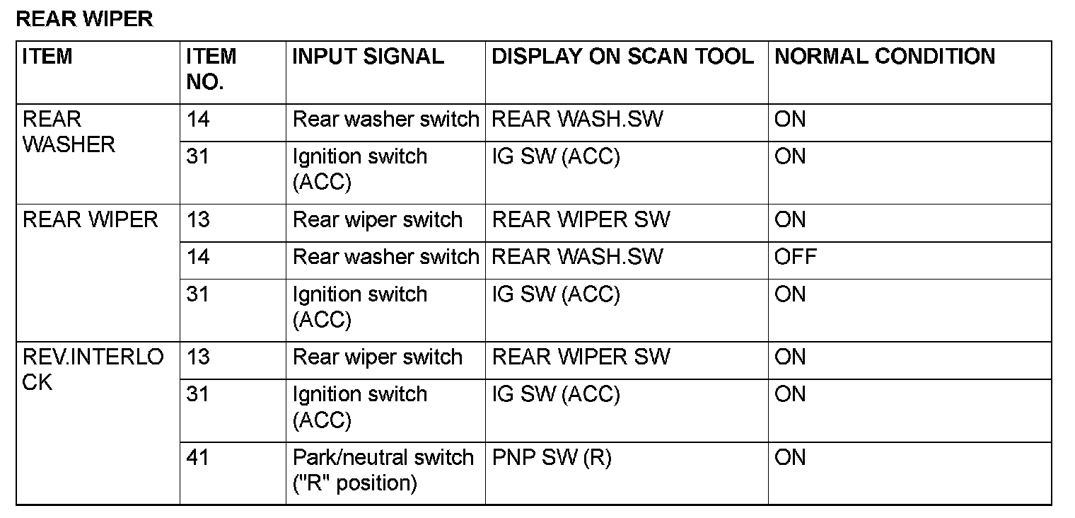 The table shows the service data and their normal condition, which are displayed during the "FUNCTION DIAG." The row "Normal conditions" shows values, which are shown when each operation is made.
