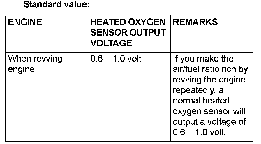 3. If the output voltage is not within the standard value, replace the heated oxygen sensor.