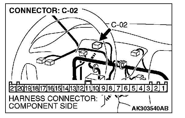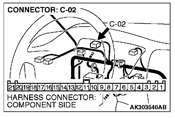 1. Disconnect the connector C-02 and measure at the harness side.