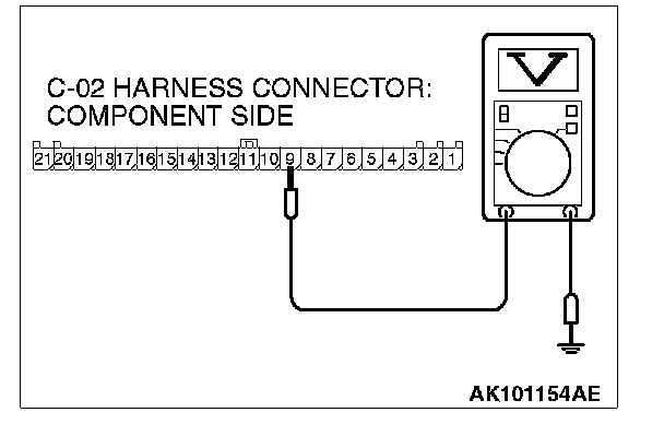 STEP 3. Measure the power supply voltage at combination meter harness side connector C-02.