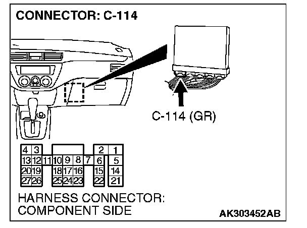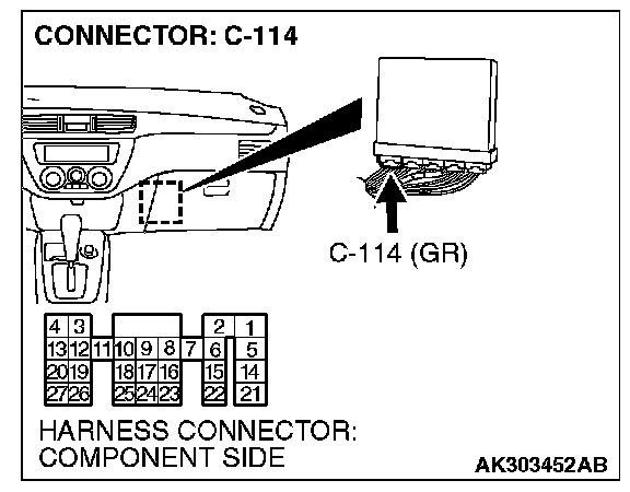 1. Disconnect the connector C-114 and measure at the harness side.