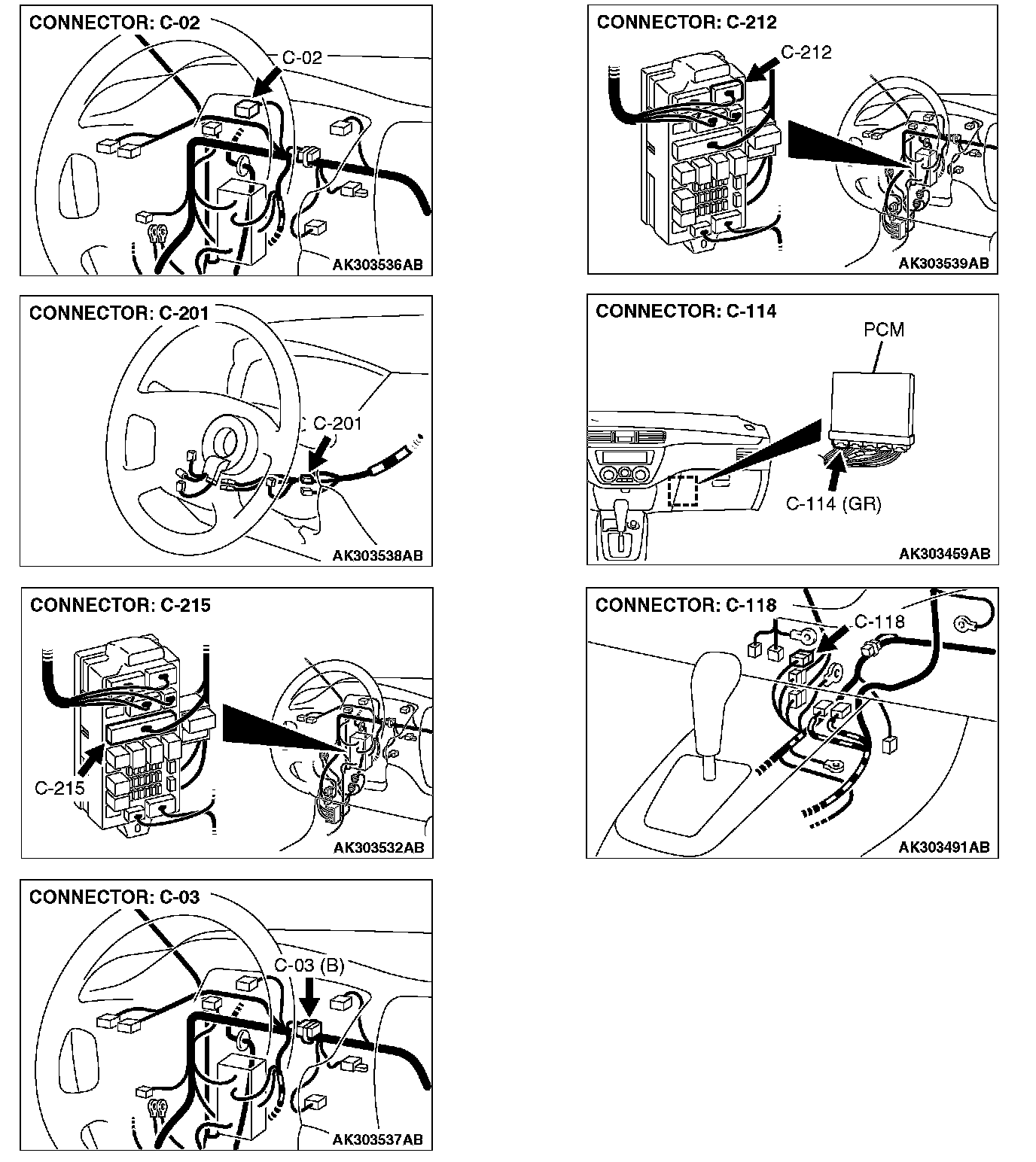 NO: Check harness connectors C-118 at the intermediate connector for damage, and repair or replace as required. Refer to Harness Connector Inspection. If the intermediate connectors are in good condition, repair harness wire between combination meter connector C-02 (terminal No. 17) and PCM connector C-14 (terminal No. 7) because of short circuit to ground. Then confirm that the malfunction symptom is eliminated.