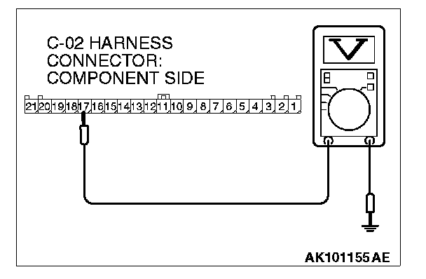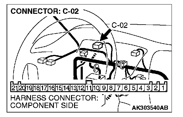 STEP 2. Check the continuity at combination meter harness side connector C-02.
