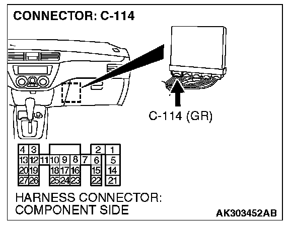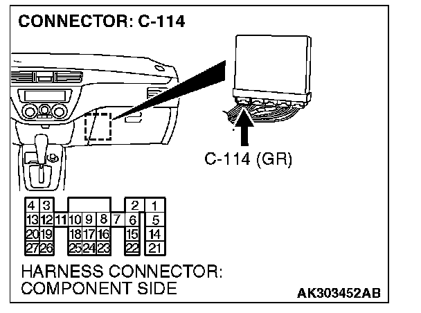 c. Check the harness wire between injector connector B-114 (terminal No. 2) and PCM connector C-114 (terminal No. 14) at No. 3 cylinder.
