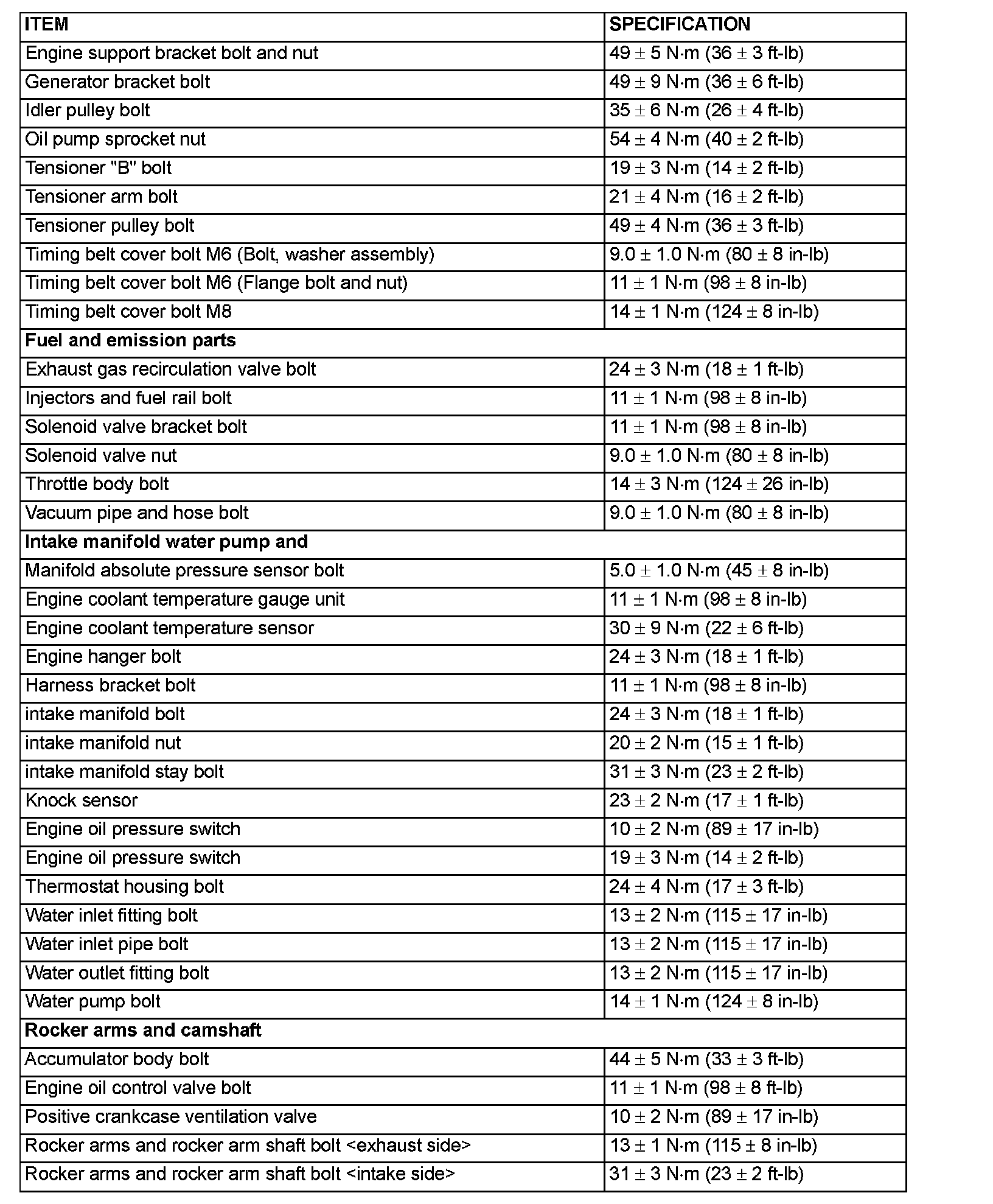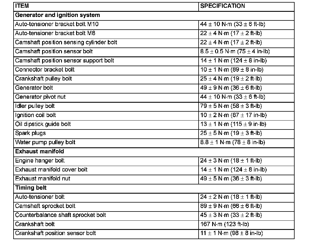 Torque Specifications
