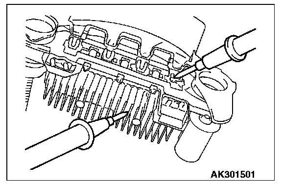 3. Check for continuity of the three diodes by connecting an ohmmeter to both ends of each diode. If there is continuity between the directions, or if there is no continuity, the diode is damaged, so replace the rectifier.