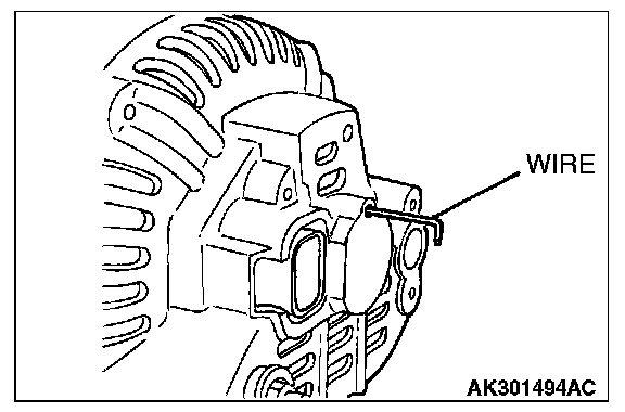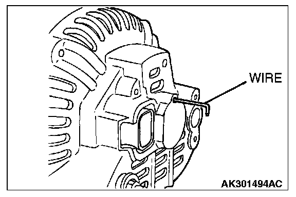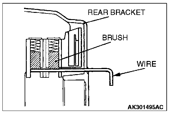 After installing the regulator assembly, insert a wire through the hole provided on the rear bracket while pressing down on the brush, and secure the brush.