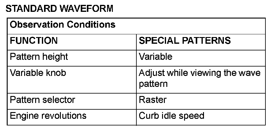 NOTE: The size of the waveform patterns can differ greatly, depending on the adjustment of the variable knob on the oscilloscope.
