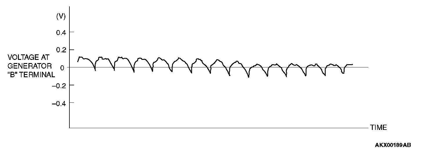 If the ripple height is abnormally high (approximately 2 V or more during idling), the wires between the generator "B" terminal and the battery have broken due to fuse blowing, etc. The generator is usually operating properly.