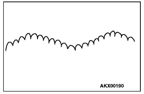 NOTE: The voltage waveform of the generator "B" terminal can undulate as shown in the figure. This waveform is produced when the regulator operates according to fluctuations in the generator load (current), and is normal for the generator.