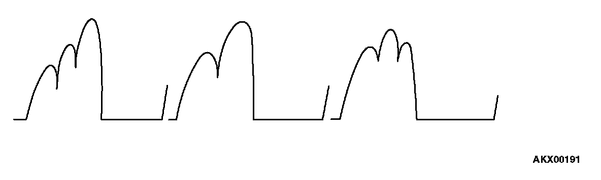 NOTE: Identification of abnormal waveforms is easier when there is a large output current (regulator is not operating). (Waveforms can be observed when the headlights are illuminated.)