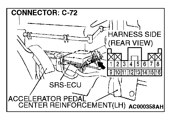 CAUTION: To release the short bar in the SRS-ECU connector, disconnect connector C-85 to short the squib circuit.