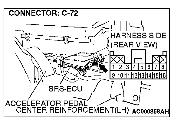 STEP 8. Check the harness for short circuit between SRS-ECU connector C-72 (terminal No.7 and 8) and clock spring connector C-85 (terminal No.3 and 4).