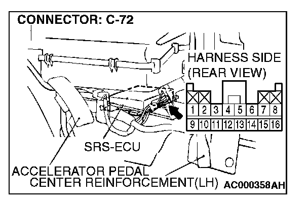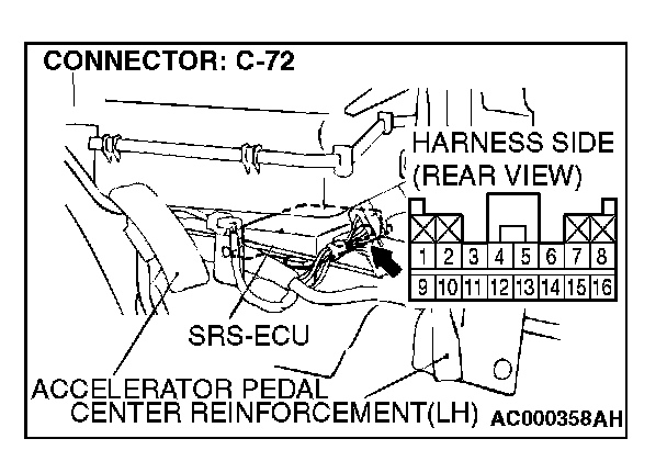 STEP 4. Check the SRS-ECU connector C-72 and clock spring connector C-85 (Using scan tool MB991958, read the diagnostic trouble code).