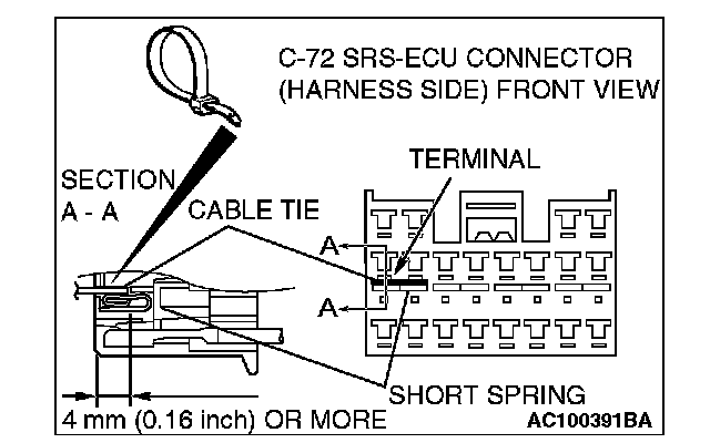 CAUTION: Insert an insulator such as a cable tie to a depth of 4mm (0.16 inch) or more, otherwise the short spring will not cable tie release.