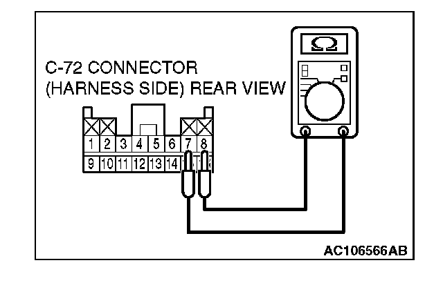 CAUTION: Do not insert a test probe into the terminal from its front side directly as the connector contact pressure may be weakened.