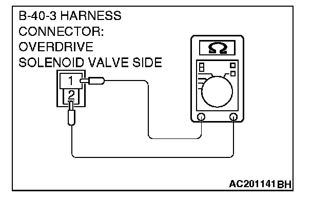 2. Measure the resistance between Overdrive solenoid valve terminals 1 and 2.