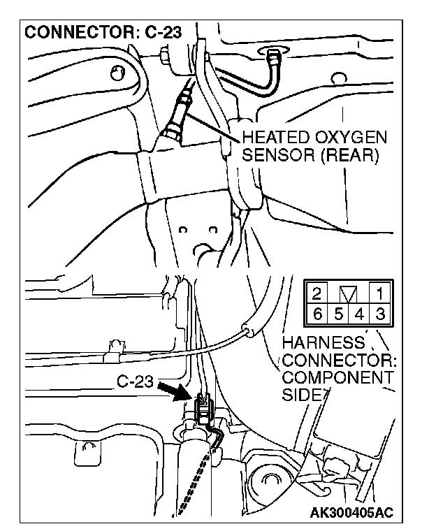 STEP 1. Check connector C-23 at heated oxygen sensor (rear) and connector C-60 at ECM