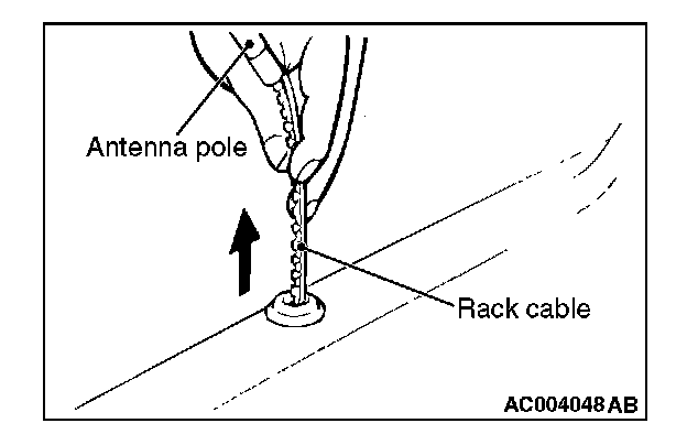 2. After turning the ignition switch to ACC or ON, turn the radio switch to ON to raise the antenna pole, and remove it, together with the rack cable.