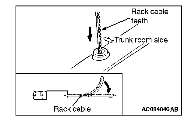 6. If the rack cable pulls out with no resistance when it is lightly pulled, then the cable is not meshed with the motor gear, so check that there are no bends in the end of the rack cable, and then repeat step 4 and 5 above.