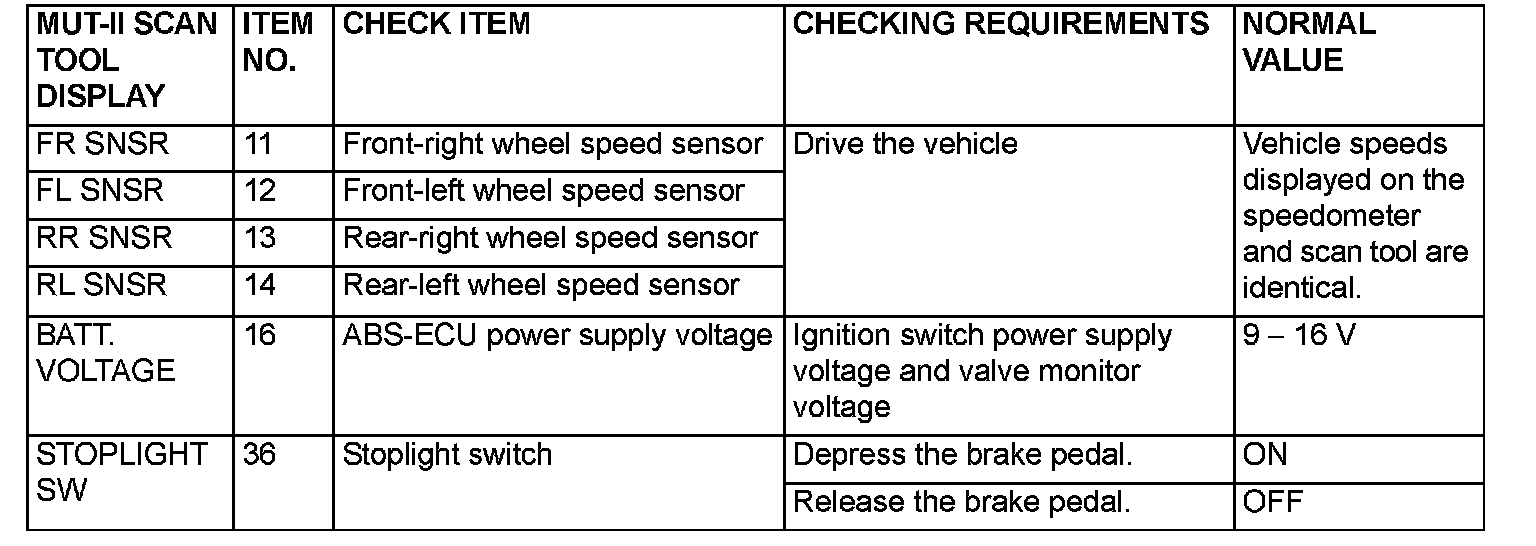 The following items can be read by the scan tool from the ABS-ECU input data.
