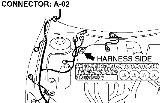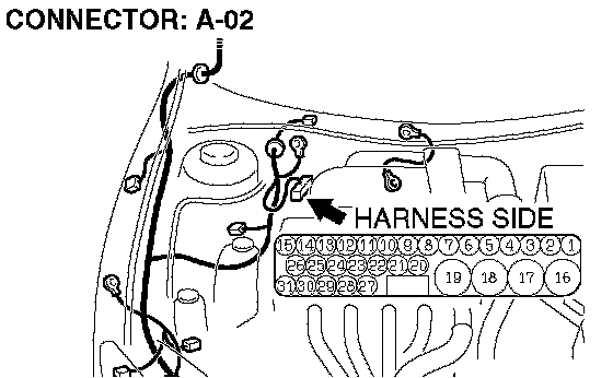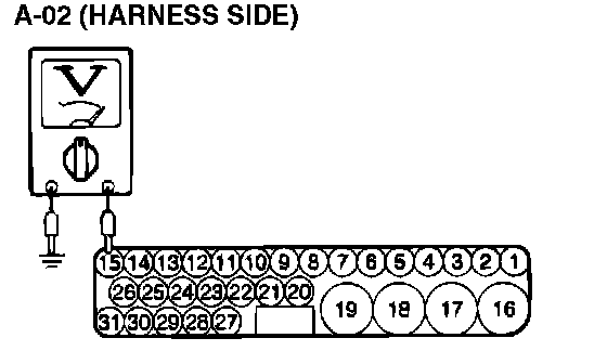 STEP 4. Check the harness wires between the ABS-ECU connector A-02 (terminals 16, 19, and 30) and ground.
