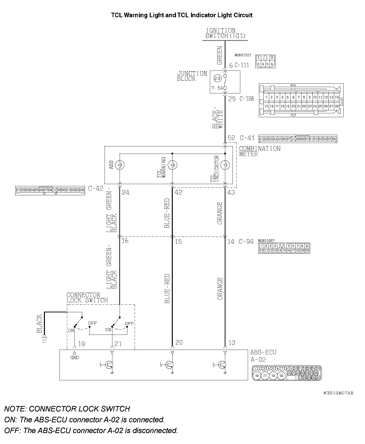 STEP 1. Check the TCL indicator light circuit at the ABS-ECU connector A-02.