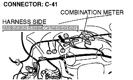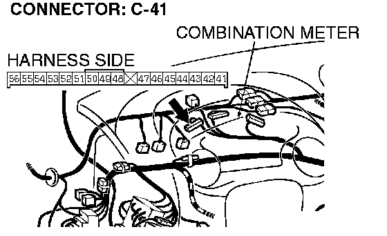 1. Disconnect the combination meter connector C-41, and check at the harness side.