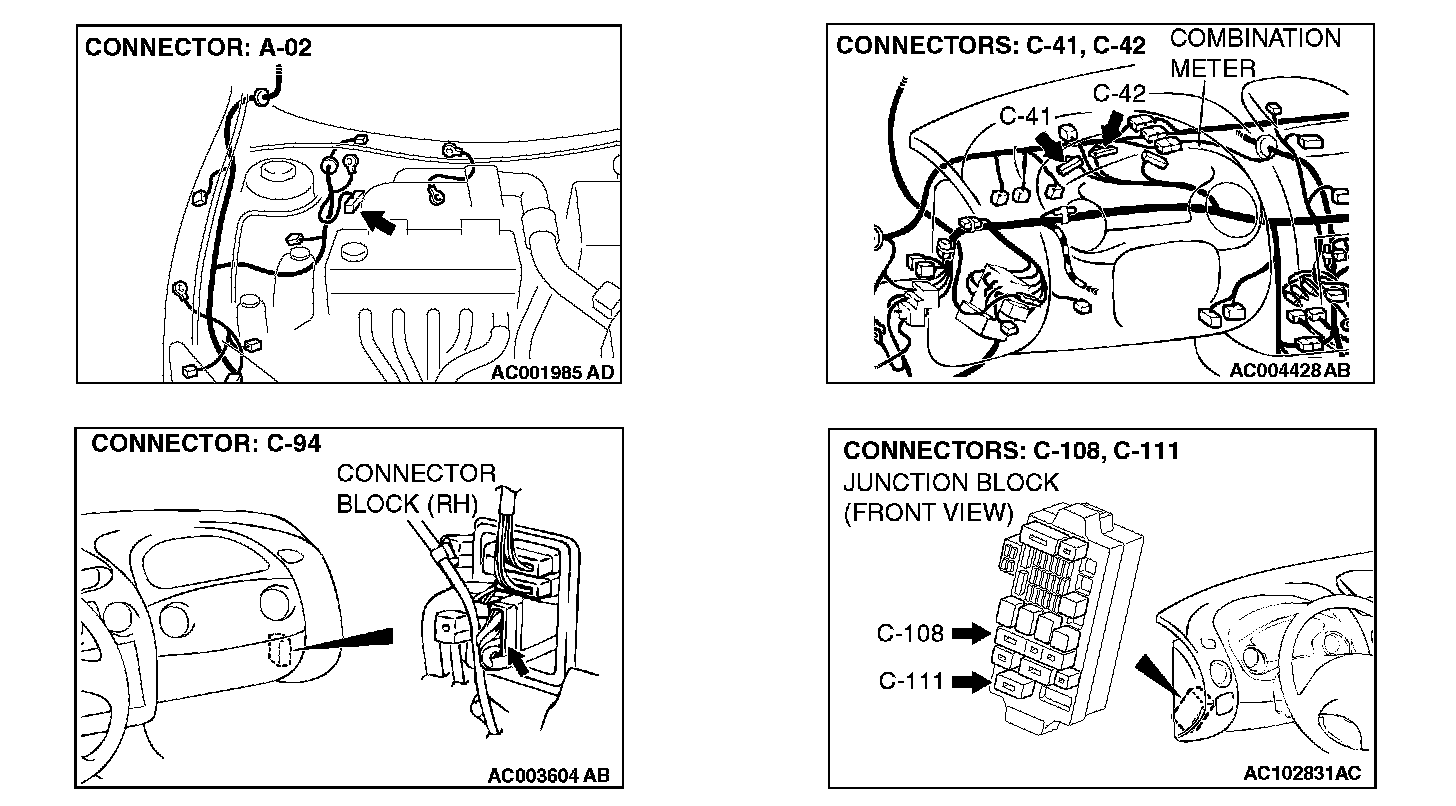 STEP 2. Check the harness wire between the ABS-ECU connector A-02 (terminal 20) and the combination meter connector C-41 (terminal 42).