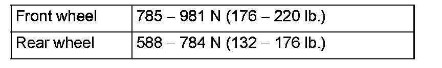 ^ When testing the front brakes, apply the parking brake. When testing the rear brakes, stop the front wheels with chocks.