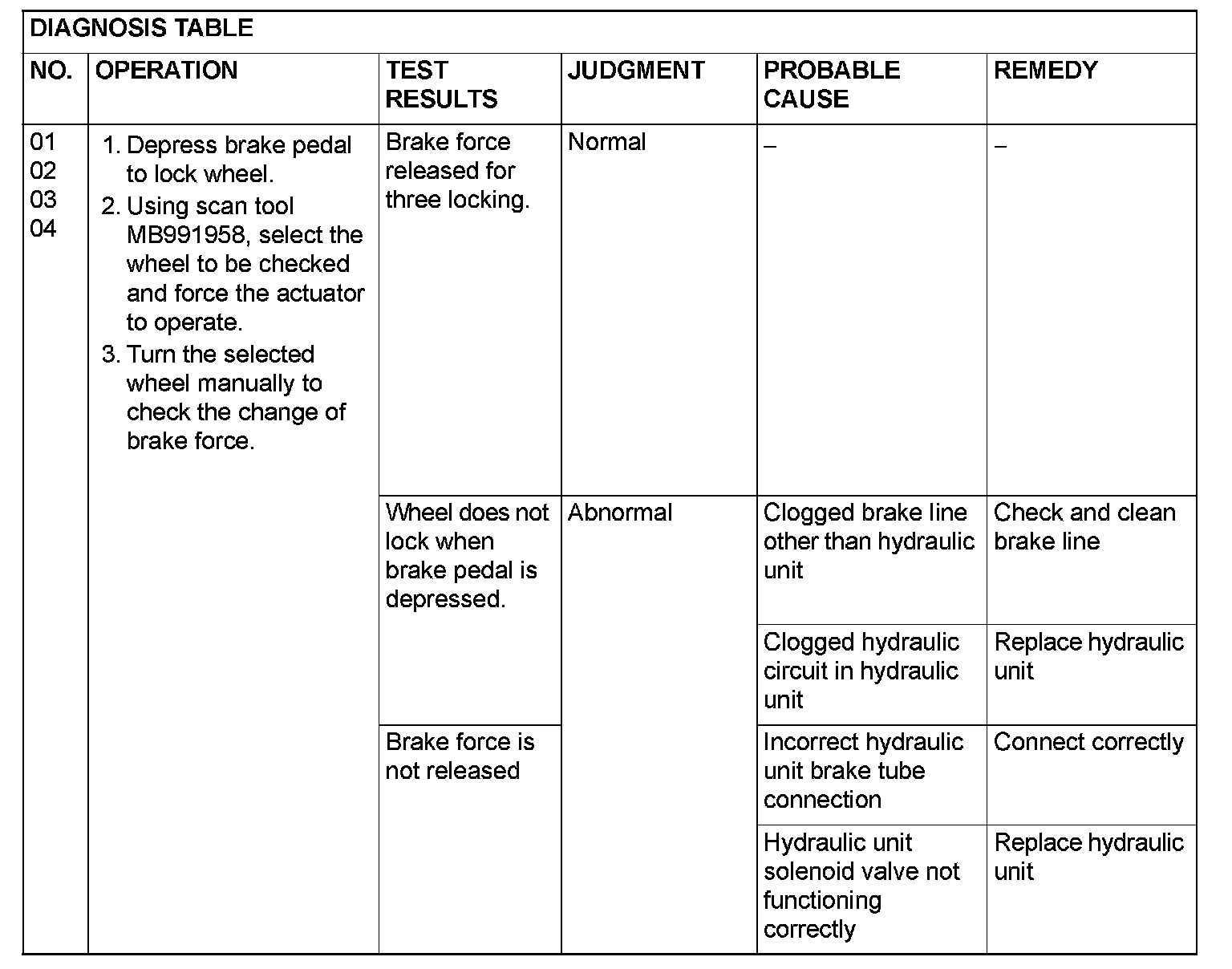 NOTE: When the ABS has been interrupted by the fail-safe function, scan tool MB991958 actuator testing cannot be used.