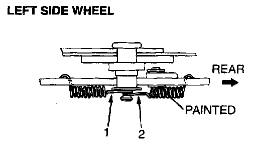 Install the adjuster so that the shoe adjusting bolt of left hand wheel is attached towards the front of the vehicle, and the shoe adjusting bolt of right hand wheel is towards the rear of the vehicle.