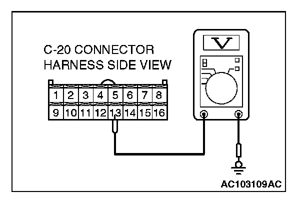 STEP 4. Check the output circuit voltage at auto-cruise control-ECU connector C-20 (terminal number 13) by backprobing.
