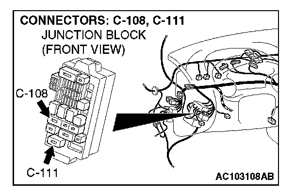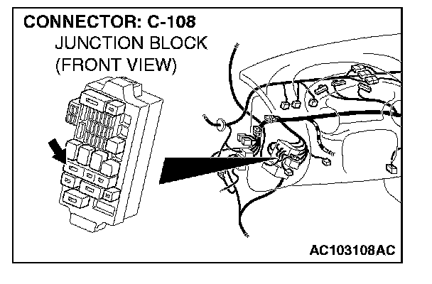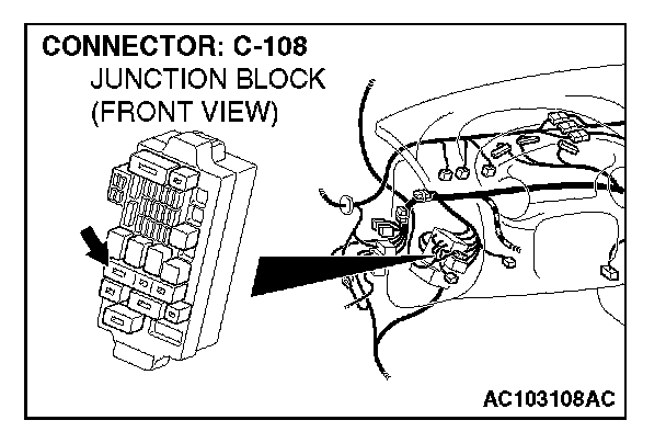 STEP 3. Check the output circuit voltage at junction block connector C-108 (terminal number 25) by backprobing.
