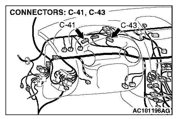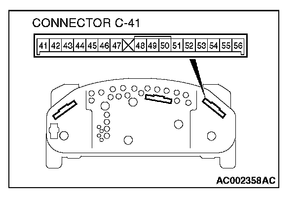 STEP 9. Check the harness wire between combination meter connector C-41 (terminal number 52) and C-43 (terminal number 1).