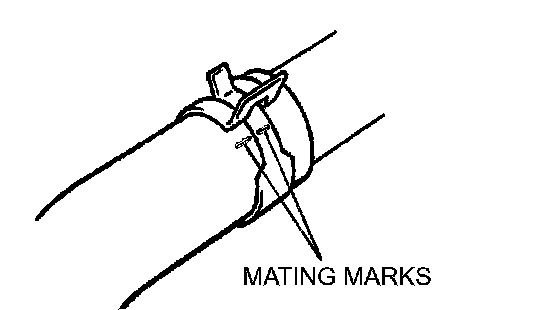 Make mating marks on the radiator hose and the hose clamp. Disconnect the radiator hose.