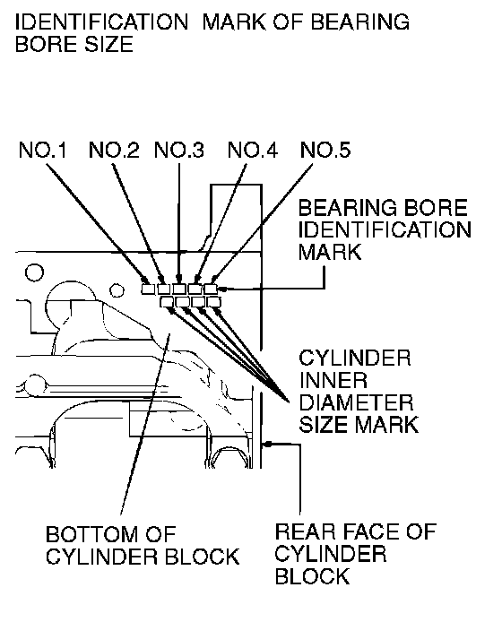 2. The cylinder block bearing bore diameter identification marks are stamped at the position shown in the illustration from left to right, beginning at No. 1.