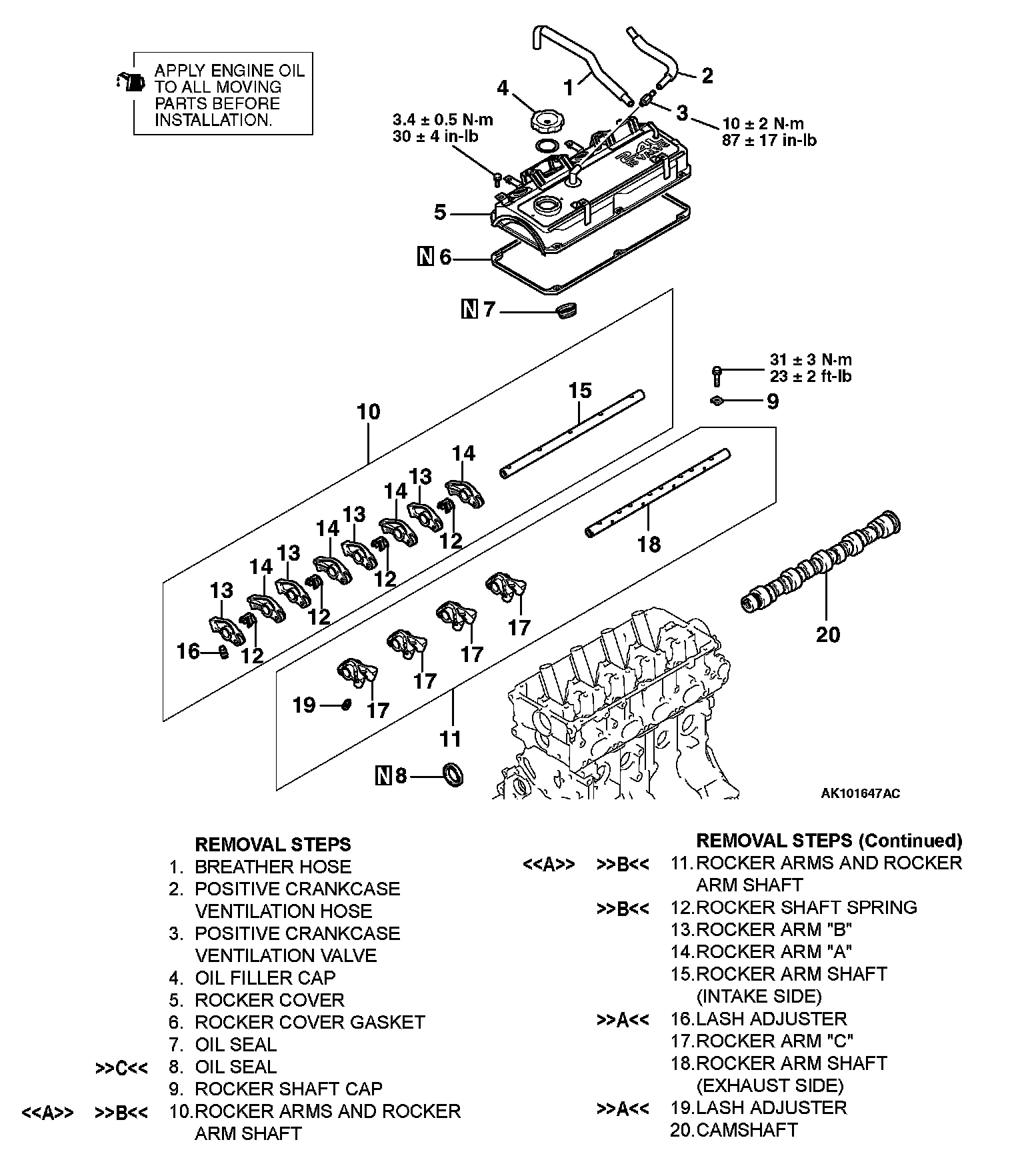 ROCKER ARMS AND CAMSHAFTREMOVAL AND INSTALLATION