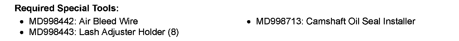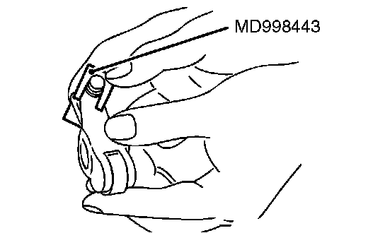 CAUTION: If the lash adjuster is re-used, clean the lash adjuster. Set special tool MD998443 to prevent the lash adjuster coming free and falling to the floor.