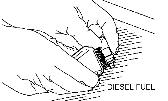 10. Stand the lash adjuster upright to prevent diesel fuel from spilling out. Do not allow the lash adjuster to become contaminated by dirt or other foreign matter. Fit the lash adjuster onto the engine as soon as possible.