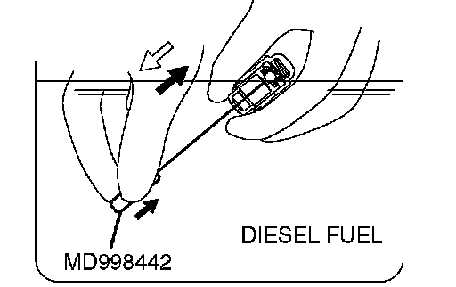 NOTE: If the lash adjuster contracts or moves, perform the operations 7 through 9 again to fill it with diesel fuel completely. Replace the lash adjuster if it still contracts or moves after performing these steps.