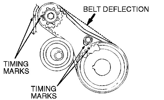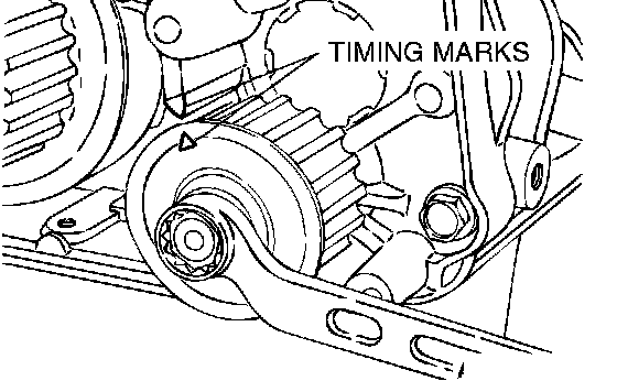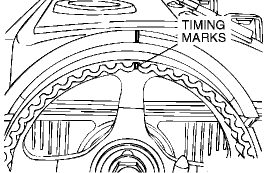 5. Check that timing marks on the sprockets are aligned with the timing marks on the front case.