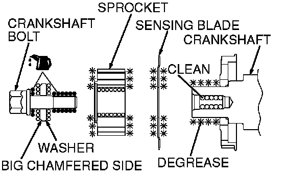 1. Clean and then degrease the contacting surfaces of the crankshaft sprocket, sensing blade and crankshaft.