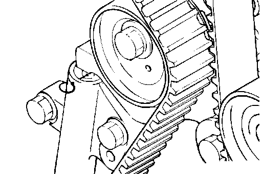 2. Loosen the tensioner pulley bolt, and then remove the timing belt.