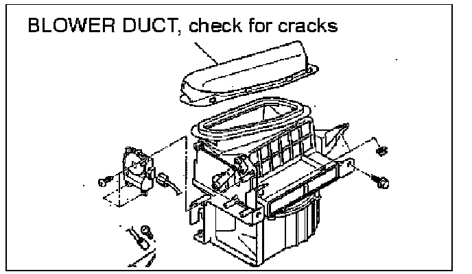 Water collecting in the passenger's side floor board area during heavy rain may be caused by a crack in the HVAC blower duct located just above the blower housing. A crack in this housing may allow water to enter. (See CAPS, PNC 86369, p/n MR398564).