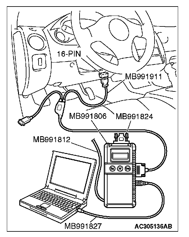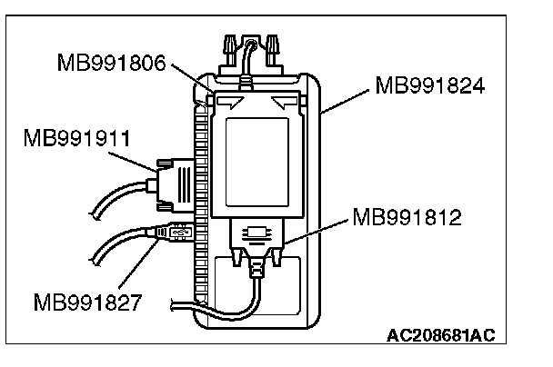 3. Connect special tool MB991827 to special tool MB991824 and the personal computer.