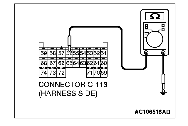 STEP 5. Check the wiring harness between ETACS-ECU connector C-119 (terminal 3) or ETACS-ECU connector C-118 (terminal 56) and the ground.