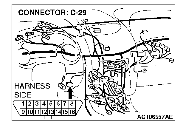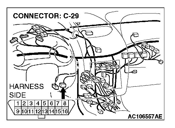 STEP 6. Check data link connector C-29 for loose, corroded or damaged terminals, or terminals pushed back in the connector.