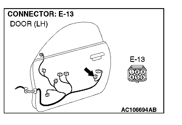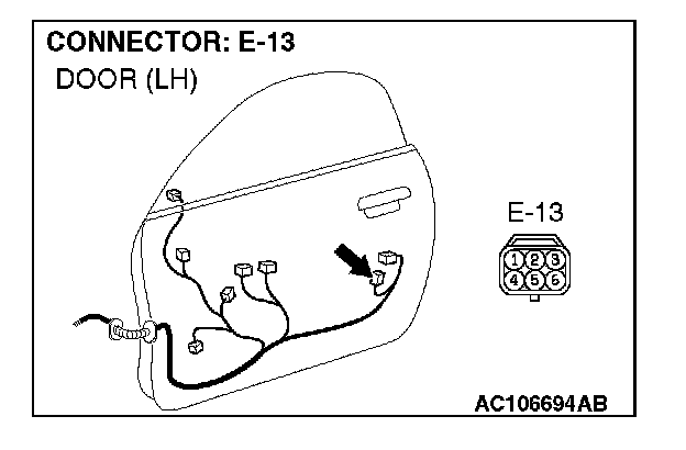 STEP 2. Check driver's door lock actuator connector E-13 for loose, corroded or damaged terminals, or terminals pushed back in the connector.