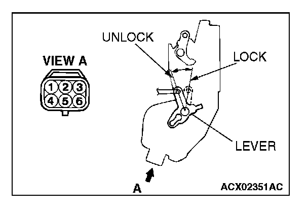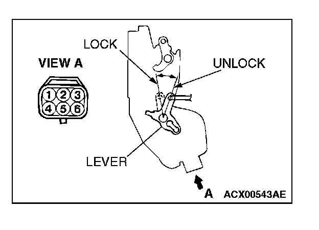 1. Remove the driver's door lock actuator, and check it. Refer to - Door Handle and Latch.